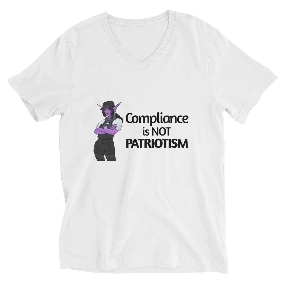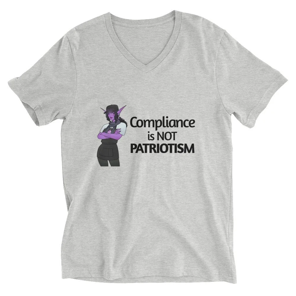"Compliance is Not Patriotism" - Unisex Short Sleeve V-Neck T-Shirt